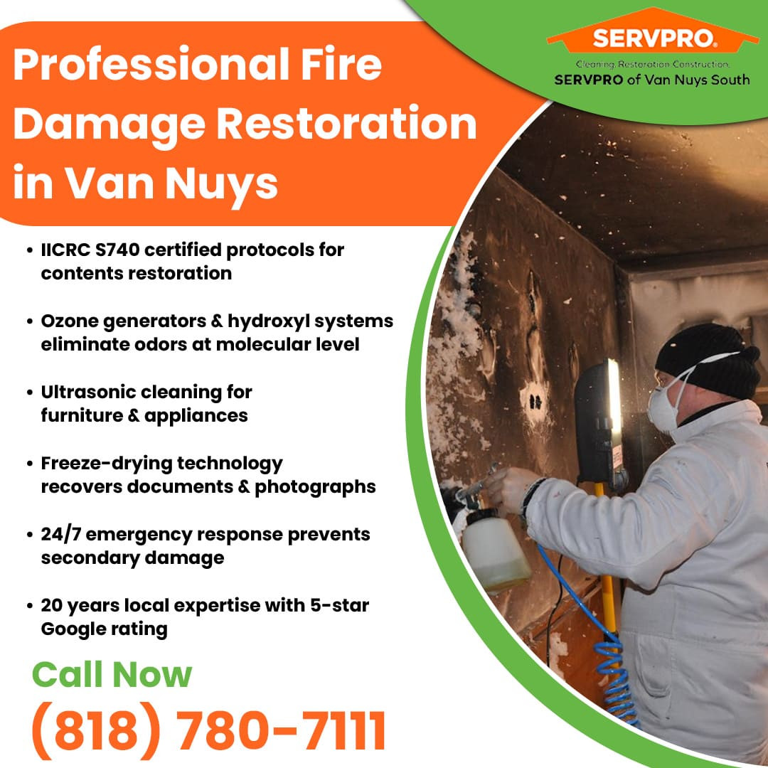 Valley Glen, CA: When fire strikes residential or commercial properties in Van Nuys, Lake Balboa, and Valley Glen, property owners face devastating decisions about their damaged belongings. SERVPRO of Van Nuys South emphasizes that understanding professional restoration standards can mean the difference between permanent loss and successful recovery of treasured items.